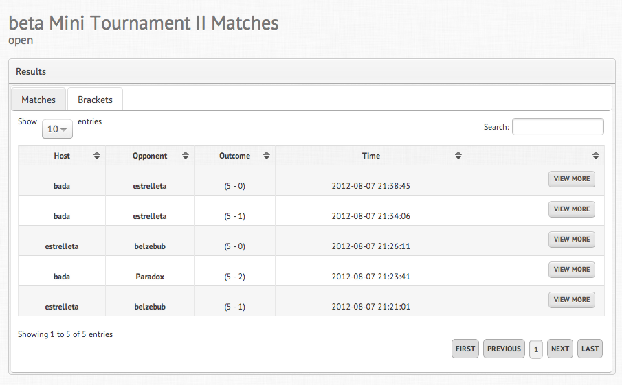 Matches are played first to 5. If you have 5 wins you win the game. If your opponent has 5 wins you lose.